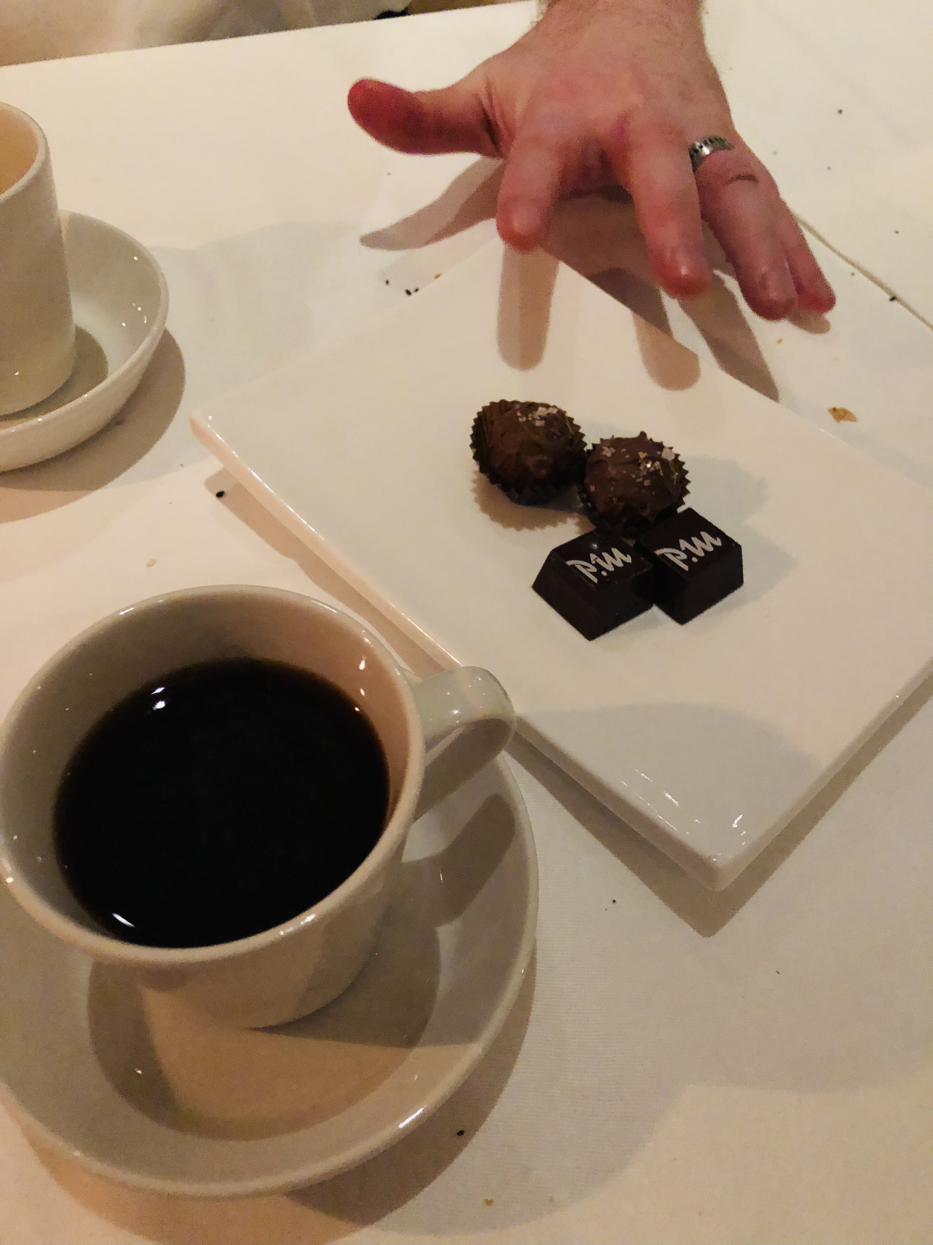 Vi satt i fem timmar och åt och drack och skrattade. Det är något med champagne som gör att jag blir så himla fnissig och den här kvällen var inget undantag. För att inte störa de andra gästerna så skrattade vi dessutom ljudlöst vilket ju bara får en att skratta ännu mer! Ni vet sådär så man sitter och guppar med öppen mun och tårar som rinner men knäpptyst, det ser så dumt ut haha!